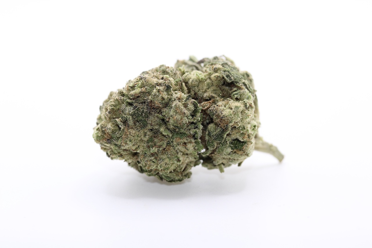 Apples and Bananas, a mix of [(Platinum Cookies and Granddaddy Purple), Blue Power] and Gelatti, is a indica hybrid (65% indica/35% sativa) with a THC level of 23%-24%. The flavour is a sweet and fruity taste, filled with delicious sugary bananas and sharply sour apples, with a touch of black pepper. The aroma is sharp punches of savory diesel and sweet chemicals.